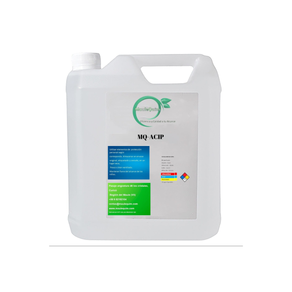 Producto líquido desincrustante a base de ácido clorhídrico y cuaternario, elimina depósitos de leche, cerveza y residuos minerales inorgánicos. Apto para procesos alimenticios térmicos, como pasteurización, y destaca por su efectividad en superficies de aluminio, acero inoxidable y plástico. No deja residuos, no es inflamable ni emite humos tóxicos, pero no debe entrar en contacto con acero, hierro, cobre o galvanizado para evitar reacciones no deseadas.